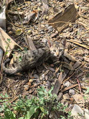 Zwischen Schutt, alten Brettern und Steinen hatte sich der kleine Kater FIETE verkrochen.