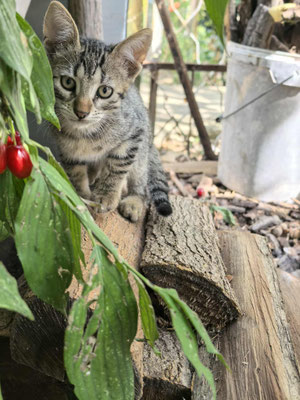 Der kleine DIEGO ist einer der beiden Brüderchen aus dem Wurf, zu dem auch Summer, Sweety, Ghosty und Flo gehören. Gemeinsam wohnen sie auf dem Hof einer älteren Dame, wo sie zwar ohne Hunger, aber auch ohne wirkliche Sicherheit und menschliche Fürsorge aufwachsen. Mariela hat leider nicht genug Platz, um alle fünf Geschwisterchen bei sich aufnehmen zu können, aber sie bringt ihnen regelmäßig Futter und schaut nach ihnen. Doch dies ersetzt natürlich kein richtiges Zuhause, in dem ein Katzenkind wirklich geborgen ist…